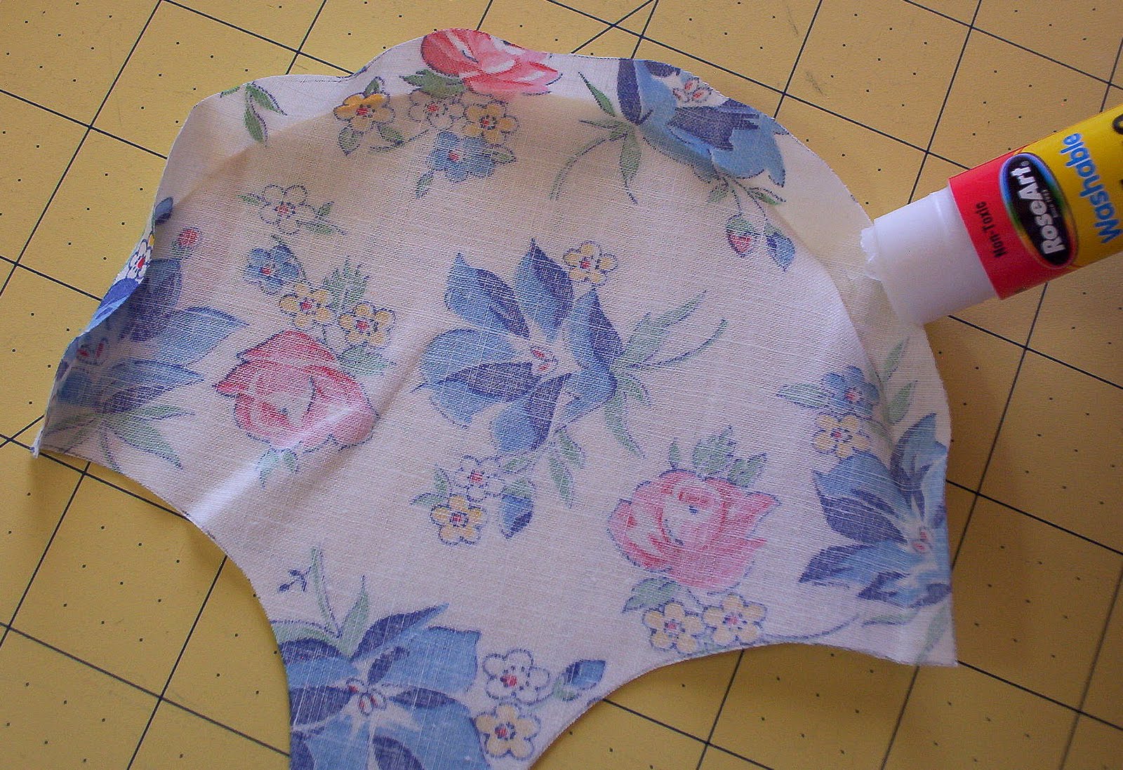 If you do get too much glue and it turns hard, I filled my washing machine with cold water and put my top in and just let it have a good soak to remove the glue. NO washing, just soak and then let your machine drain and spin at the end of the wash cycle. I then took it outside and laid it flat out on the grass in the sun and let it dry naturally. When it was dry I lightly pressed it to make it smooth so I could sandwich it with my batting and the back.